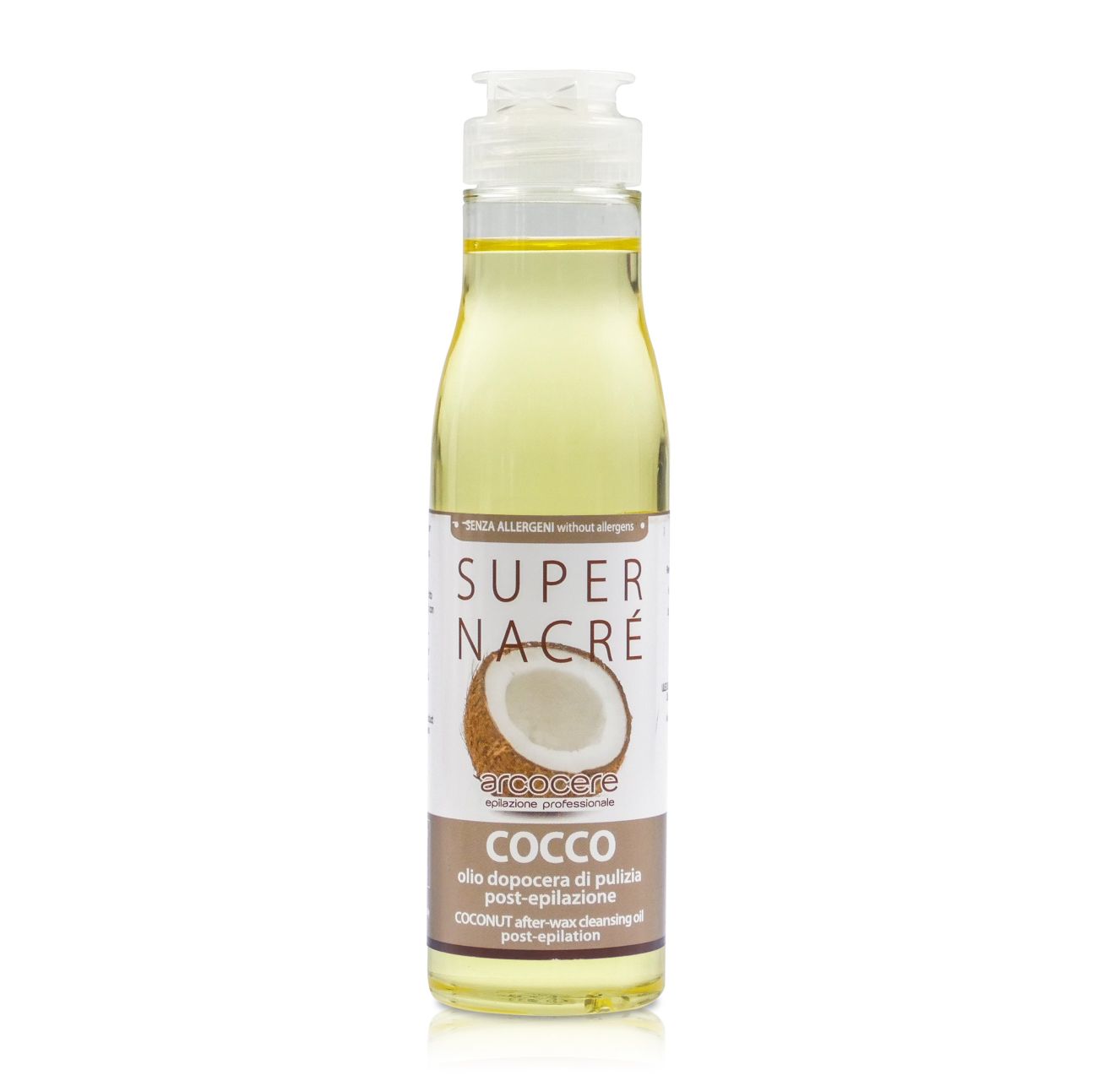 Vysoce kvalitní zklidňující čistící olej po depilaci od italské společnosti Arcocere odstraní zbylý vosk a zabraňuje vysychání pokožky. Arcocere podepilační čistící olej je bohatý na přírodní prvky, má osvěžující a protizánětlivé účinky. Zanechává pokožku jemnou, hladkou a zároveň hydratovanou. Jemná vůně zanechává intenzivní pocit odpočinku. S vůní kokosu. Objem: 150 ml
