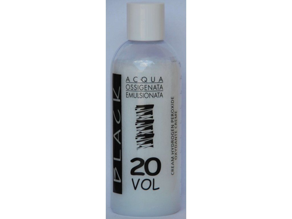 Peroxid vodíku 6%. - krytí a barvení tón v tónu. Peroxid vodíku Black se dodává v emulzi, jejíž výhodou je hutnější konzistence vzhledem k běžnému tekutému peroxidu vodíku. Krémová konzistence tohoto výrobku zaručuje snazší použití, zabraňuje problémům se stékáním a je k vlasům šetrnější.