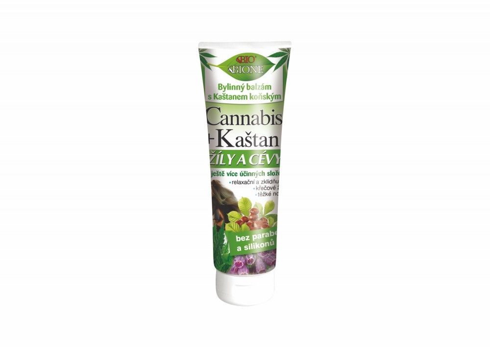 Bylinný balzám na unavené nohy – emulgel s „koňskou silou“ kaštanu koňského a extraktu ze semen červeného vína. Extrakt kaštanu, vína, mentol, kafr, eukalyptus, a další složky působí relaxačně a blahodárně na unavené a těžké nohy se sklonem k tvorbě křečových žil. Používá se k relaxační a uvolňovací masáži pokožky unavených a těžkých nohou, při svalovém zatuhnutí, pro relaxační masáže natažených šlach a při různých zhmožděninách. Masáží se pokožka i ostatní tkáně prokrví a prohřejí, uvolní se svalový tonus, pročistí se lymfatické dráhy. Balzám obsahuje nejen konopný olej, ale i extrakt z celé listové části rostliny. Extrakt i olej Cannabis je znám svým používáním v lidovém léčitelství pro své údajné protizánětlivé, antibakteriální, protialergické a regenerační vlastnosti na pokožku. Olej ze semínek rostliny Cannabis se v lidovém léčitelství s oblibou doporučuje na různé dermatitidy, u atopického ekzému, lupénky, akné a oparů. Má uklidňující a zvláčňující účinky, chrání pokožku před vysoušením a praskáním. Dále obsahuje hydratační glycerin, rostlinné bambucké máslo, panthenol, allantoin a vitamín E. Polyfenolické látky a escin z rostlinných extraktů se s oblibou tradičně používají jako složky mazání na křečové žíly. Rychle se vstřebává, zanechává příjemný nemastný pocit. Na pokožku v postižené oblasti naneste balzám a provádějte 5–15 min. masáž, směrem od konce nohou k trupu.