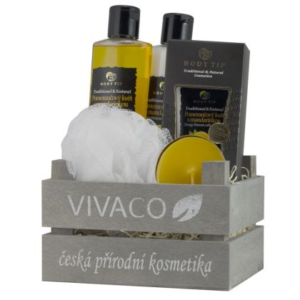 Dárkové balení kosmetiky s výtažky z citrusů a mandlovým olejem v dřevěné bedýnce dodá pokožce i pleti vitamíny, svěžest a potřebnou vláhu. Tato kosmetická lahůdka by Vám v koupelně rozhodně chybět neměla!