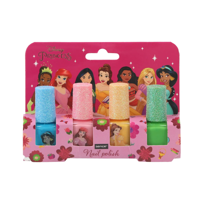 Laky na nehty pro malé parádnice. V balení jsou ve 4 barvách - žlutá, růžová, modrá a zelená a lahvičky jsou ozdobeny oblíbenými Disney princeznami.