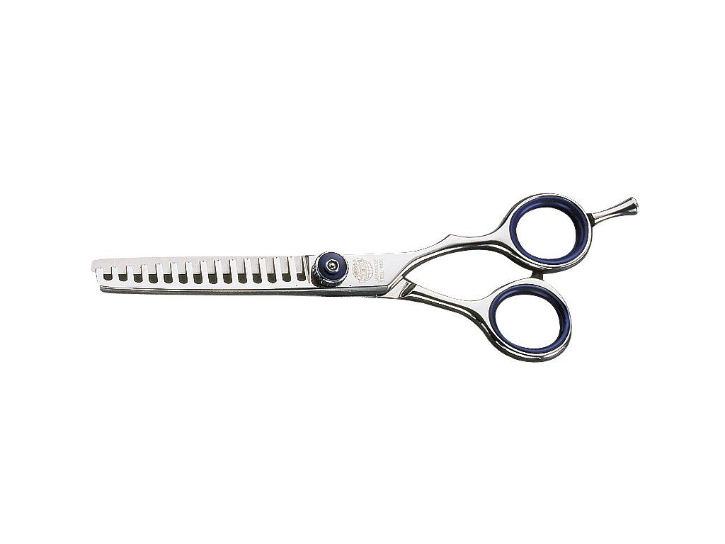 Nůžky „regular“ prostřihávací hrubé 6“, opěrka prstu, délka 16 cm, 14 zubů. Vyrobené z nejkvalitnější japonské oceli (Japanese steel 440C), konvexně (vypouklé) tvarované břity s plně integrovaným ostřím rovnajícím se parametrům žiletky, „Vacuum Heat Treatment“ technologie zajišťuje kalení s dlouhou životností materiálu v rozpětí teploty „sub zero“ – 180°C do + 1050°C, ostří nůžek je tvrdé a současně pružné, tři typy rukojetí – tradiční „Regular“, ergonomický „Semi-Offset a „Offset“, snímatelná opěrka prstu + silikonové změkčené futérko zajišťují komfortní držení nůžek a současně zamezují možnou alergii, středový šroub umožňuje individuální nastavení chodu nůžek a dovoluje stříhat všechny typy tloušťky a tvrdosti vlasů, obě strany ostří hladce broušené, ideální pro precizní klouzavý střih.