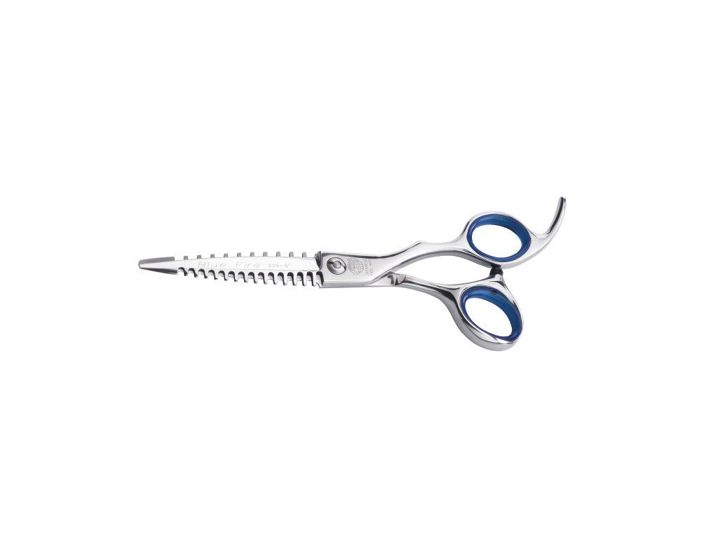 Nůžky „regular“ prostřihávací 5.5“, opěrka prstu, délka 14 cm, 38 zubů, broušené diamantem, regulovatelný přítlak.