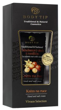 Sametově hladký krém s vysokým obsahem přírodních výtažků pokožku rukou vyživuje, zvláčňuje a zároveň posiluje nehty. Ideální pro ošetření pokožky rukou po celý den. Kosmetika s makadamiovým olejem a vanilkou dodá pokožce i pleti vitamíny, výživu a potřebnou vláhu. Tato kosmetická lahůdka by Vám v koupelně rozhodně chybět neměla! Tělová a pleťová kosmetika BODY TIP by Vám ve vaší koupelně rozhodně chybět neměla. Výběr je opravdu široký. Je už jen na Vás, jestli dáte přednost svěžím citrusům, výživným oříškům, skořici či vanilce nebo české klasice, jako je švestka a černý rybíz. Sametově hladký krém s vysokým obsahem přírodních výtažků pokožku rukou vyživuje, zvláčňuje a zároveň posiluje nehty. Rychle se vstřebává bez zanechání mastného filmu. Skvělý krém, který pečuje o ruce a nádherně voní. Ideální pro hydrataci a ošetření pokožky rukou po celý den. Použití: Aplikujte dle potřeby kdykoli během dne. Lze použít i na nohy. Složení: Aqua, Prunus Amygdalus Dulcis Oil, Cetearyl Alcohol, Glyceryl Stearate, Hydrogenated Coconut Oil, Glycerin, Ceteareth-20, Glyceryl Stearate Citrate, Benzyl Alcohol, Sodium Benzoate, Vannila Planifolia Fruit Extract, Potassium Sorbate, Parfum, Citrid Acid, Macadamia Integrifolia Seed Oil, Citrus Aurantium Dulcis Fruit Extract, Citrus Nobilis Peel Oil, Salvia Hispanica Seed Oil, Ribes Nigrum Seed Oil, Prunus Domestica Seed Oil, Lycium Chinense Fruit Extract Citral, Citronellol, Coumarin, Hexyl Cinnamal Geraniol, Limonene