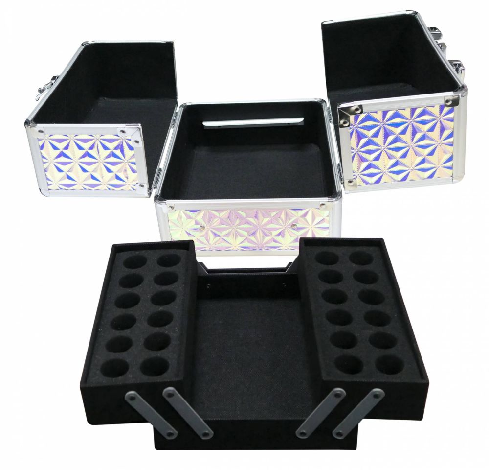 NANI rozkládací kosmetický kufřík pro vaše kosmetické doplňky a přípravky. Díky masivní hliníkové konstrukci je velmi odolný, a přesto dostatečně lehký.