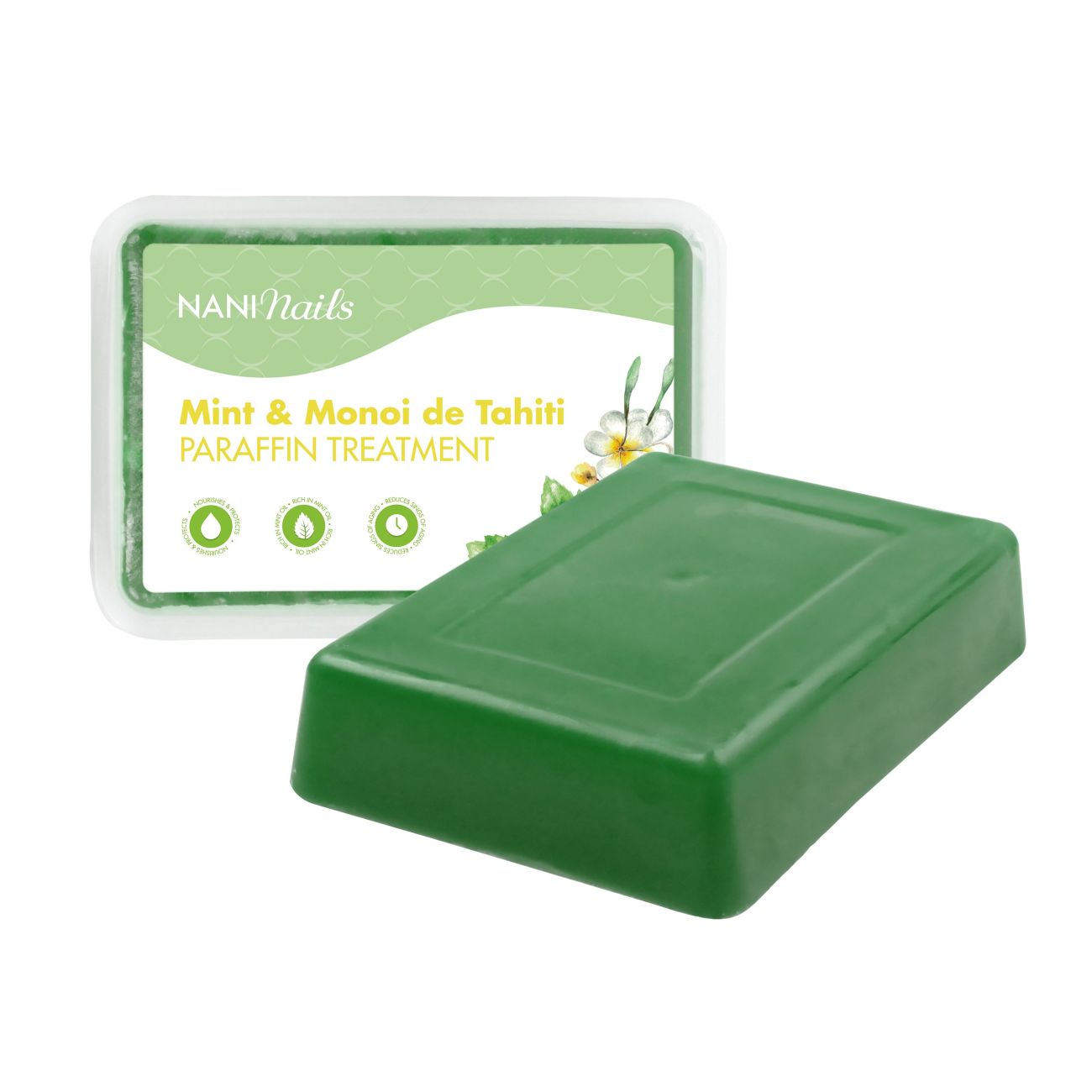 Povzbuzující a doplňující ošetření pro pokožku rukou a chodidel. Parafínový zábal působí do nejhlubších vrstev pokožky, kterou hydratuje, vyživuje a omlazuje. Monoi de Tahiti obnovuje přirozenou hydrolipidovou vrstvu pokožky, chrání ji a doplňuje. Současně zvyšuje elasticitu pokožky a její schopnost zadržovat vlhkost. Mátový olej pokožku povzbuzuje a poskytuje jí dlouhotrvající svěžest. Kosmetický parafín ve formě zábalů působí blahodárně proti stárnutí pleti, otevírá póry, odstraňuje odumřelou kůži, změkčuje ji, napomáhá hojení ran a prokrvení pokožky a zároveň uvolňuje ztuhlé svaly. Při ošetření nohou se pak snadno zbavíte nepěkné ztvrdlé kůže na patách. Parafín je určen do parafinových van pro parafinové koupele a zábaly. Návod k použití: Před ošetřením dezinfikujte ruce/nohy. Jemnými krouživými pohyby proveďte ruční peeling a poté aplikujte silnou vrstvu vhodného krému. Poté ponořte ruce/nohy 2-3krát do předehřátého parafínu (asi 50° C). Jakmile parafín odkape z dlaní/chodidel, navlečte na ně fóliové rukavice a následně froté rukavice. Parafín nechte působit 10 až 20 minut. Poté sejměte froté rukavice a lehce masírujte ruku/nohu přes fóliové rukavice, tímto pomalu uvolníte parafín z pokožky. Vmasírujte případné zbytky krému do pokožky tak, aby se zcela vstřebal. Upozornění: Parafín je hořlavý. Udržujte mimo dosah otevřeného ohně nebo elektrických ohřívačů s exponovanými součástkami. Udržujte parafín při teplotě pod 56 °C. Pouze pro profesionální použití. Vůně máty. Váha 500 g. Vyrobeno ve Španělsku.