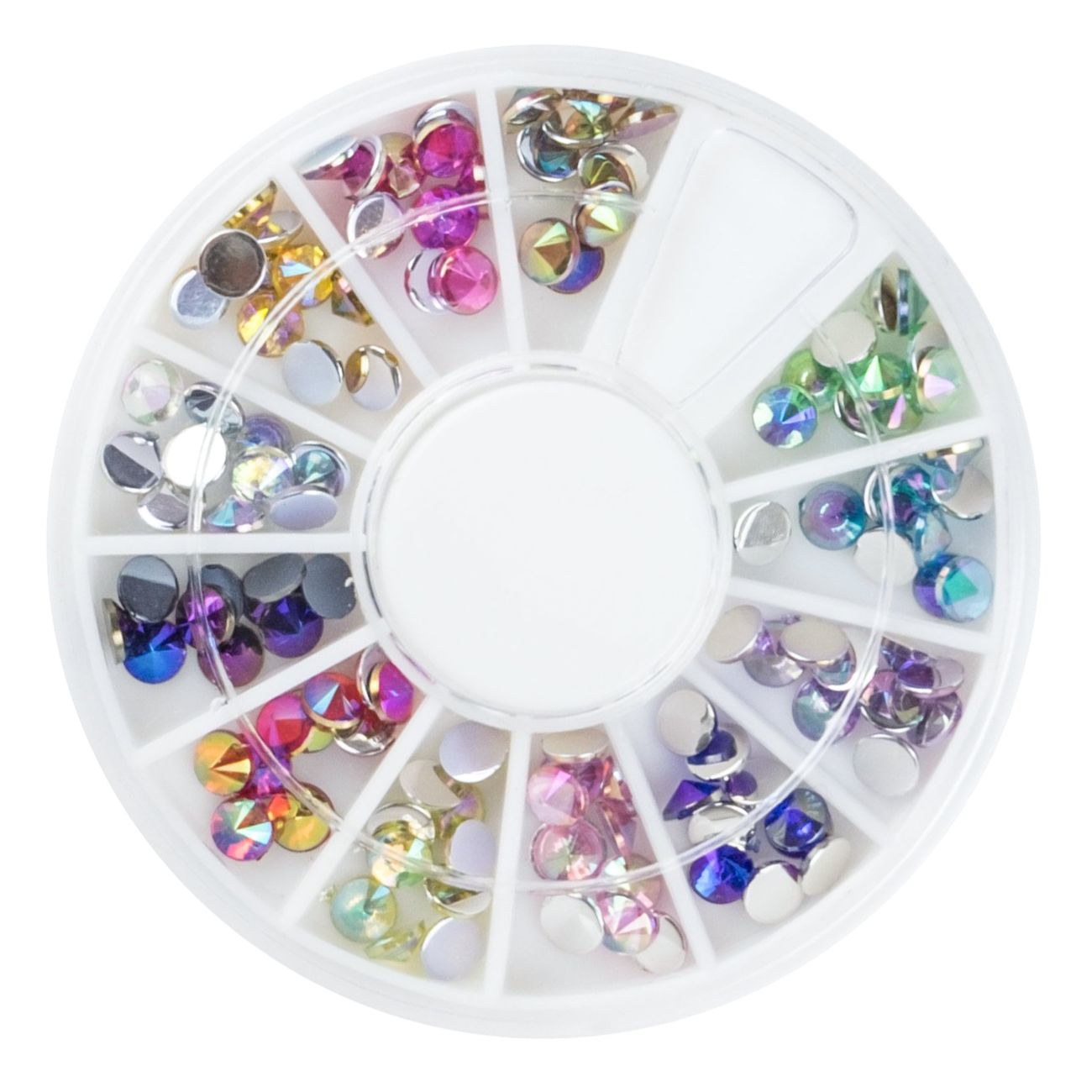 Zdobení na nehty v karuselce - Kamínky v různých barvách. barevné provedení kamínků s duhovým odrazem zabaleno v elegantní karuselce vhodné na UV gel i akryl vzor: kamínky
