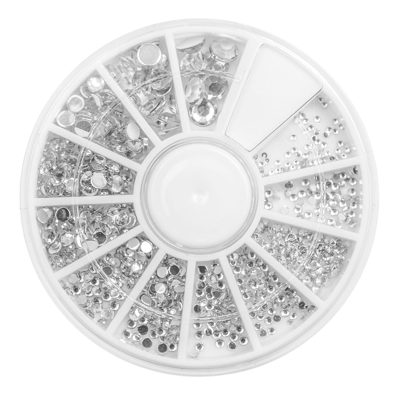 Zdobení na nehty v karuselce. KAMÍNKY s duhovým odrazem světa.- cca 600 kusů v balení- zabaleno v elegantní karuselce- vhodné na UV gel i akryl- vzor: kamínky