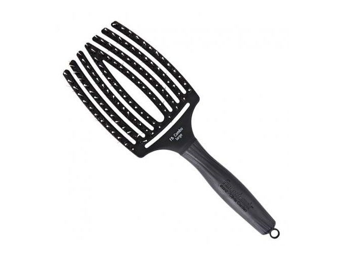 Kartáč Olivia Garden Fingerbrush má zakřivený tvar, inspirovaný tvarem dlaně ruky. Tento kartáč je perfektní pro styling, rozčesávání i foukání. Štětiny kartáče jsou šetrné k vlasům i k vlasové pokožce. Kartáč vlasy snadno pronikne díky nylonovým štětinám, zakončeným velmi jemnou kuličkou. Kančí štětiny vlasům pak dodají lesk a dokonale je uhladí. Kartáč je extra odlehčený a má patentovanou protiskluzovou rukojeť, která se velmi příjemně drží. Na konci rukojeti je výsuvná vypichovací špička pro náročnější účesy.