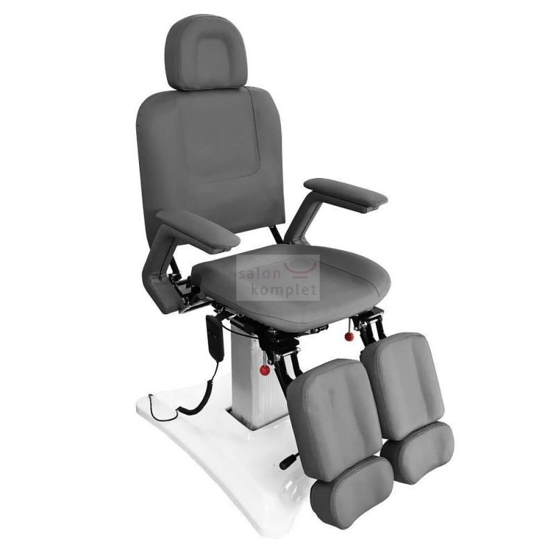 Pedikérské křeslo s elektricky nastavitelnou výškou a nastavitenými podnožkami.