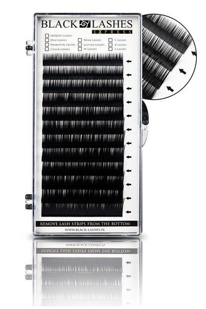 Profesionální permanentní řasy značky Black Lashes obsahují umělé řasy typu D o síle 0,15 mm. - 12 řad v délce 8 - 16 mm (8 mm - 1 pásek, 9 mm - 1 pásek, 10 mm - 1 pásek, 11 mm - 2 pásky, 12 mm - 2 pásky, 13 mm - 2 pásky, 14 mm - 1 pásek, 15 mm - 1 pásek, 16 mm - 1 pásek) - profesionální umělé řasy určené pro metodu řasa na řasu - odlehčený umělý typ řas (nedochází tak k přetěžování přírodních řas) - řasy jsou baleny systémem Easy-Off (jednoduchá manipulace s řasami) - vysoce kvalitní produkt - baleno v praktickém obalu - značka Black Lashes