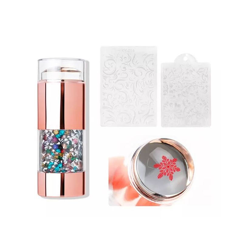 Razítko silikonové již nabízíme v krásném odstínu Rose Gold zdobené barevnými kamínky, silikon je v průhledném provedení, které Vám umožní přesnější obtisk motivu razítka na nehet. JE DŮLEŽITÉ!!! Destičku očistit odakovačem a setřít do sucha, nanést dostatečné množství laku, lehkou rukou setřít lak stěrkou na motivu, lehkou rukou do středu silikonu obtisknout motiv z destičky a opět lehkou rukou obtisknout razítko na nehet. Pokud budete příliš tlačit, z motivu zbytečně vytřete lak a při obtisknutí na nehet si silikon zničíte po stranách!!!Stírací kartička je vyrobena z plastu, aby se zdobící destičky nepoškrábaly.