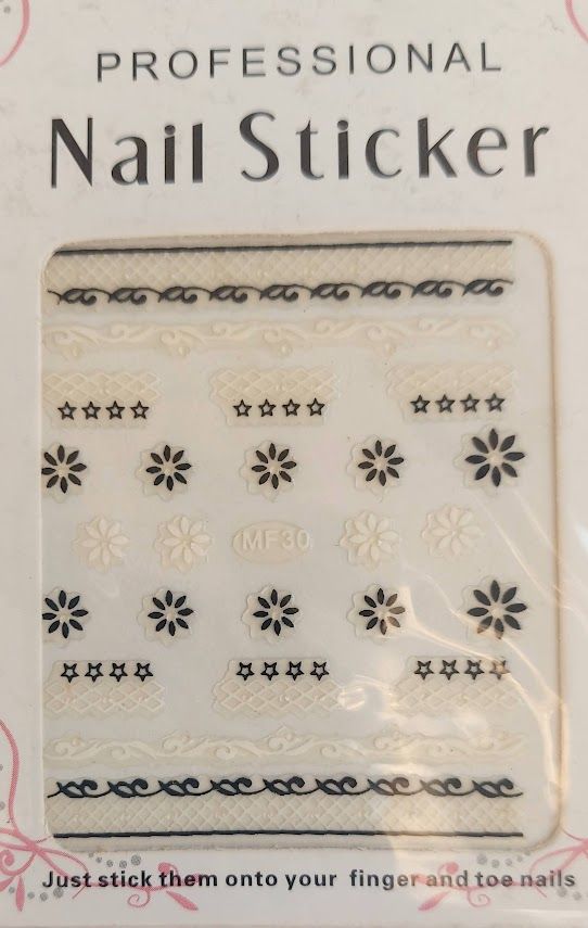 Samolepky na nehty-bílé/ černé kytičky