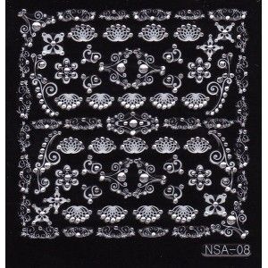 Samolepky 3D stříbrné ornamenty s kamínky/ornament se může mírně lišit/