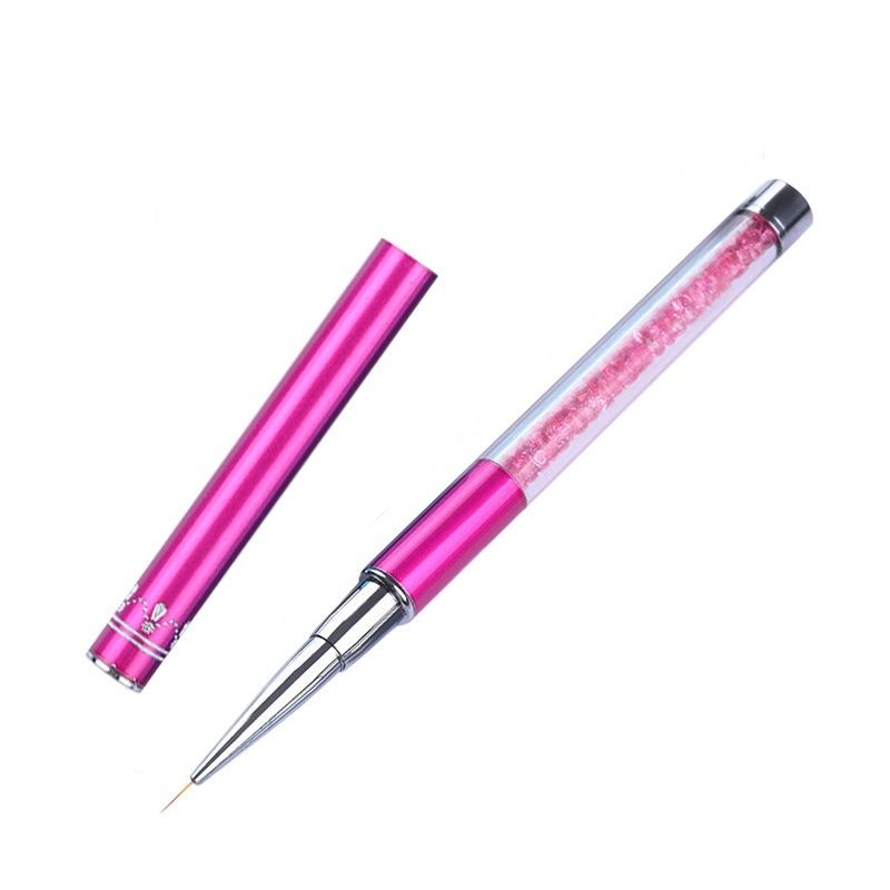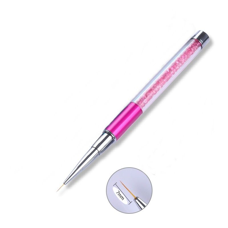 Luxusní zdobící štětec s extra tenkým chlupem pro Nail Art - délka chlupu 7mm, rukojeť je ozdobena růžovými kamínky, štětec je uzavíratelný