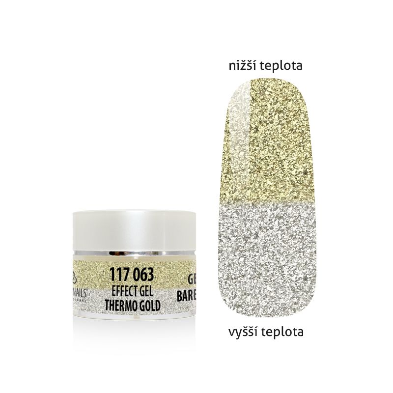 Effect THERMO gel ( zlatá - stříbrná ) - barevný gel , jehož odstín barev se mění vlivem tepla a chladu.