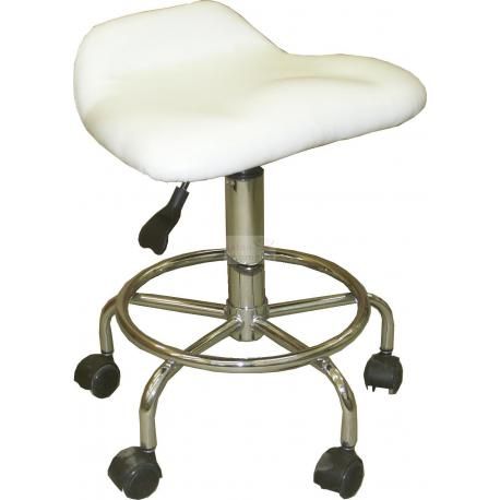 Kosmetická otočná židle na kolečkách s opěrou pro nohy. Výška nastavitelná pomocí pneumatické báze.